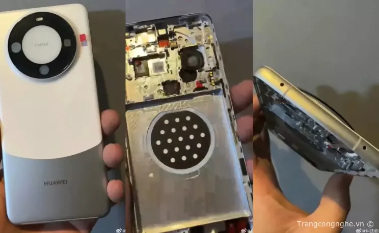 Một số hình ảnh thực tế được cho là của Huawei Mate 60, chiếc smartphone sắp ra mắt, đã được chia sẻ trên Weibo. Các hình ảnh này cho thấy mặt sau của thiết bị được chia thành hai phần với hai tông màu khác nhau. Phần trên có vẻ như là kính mờ trong khi phần dưới làm bằng kim loại. Module camera trên Mate 60 có hình tròn và được khoét ba lỗ để chứa các cảm biến camera.