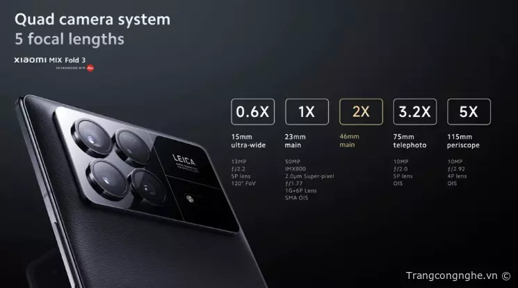 Xiaomi Mix Fold3 có hệ thống camera sau được nâng cấp với các thông số cụ thể như sau: