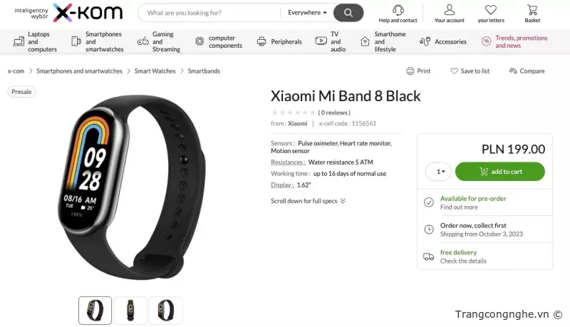Xiaomi Smart Band 8, một chiếc vòng đeo tay thông minh thế hệ mới, đã được giới thiệu tại thị trường Trung Quốc vào tháng 4 vừa qua. Và theo những phát hiện mới nhất, Xiaomi có vẻ đã sẵn sàng để ra mắt sản phẩm này trên thị trường quốc tế. Mặc dù chưa có thông báo chính thức, nhưng nhà bán lẻ X-Kom của Ba Lan đã được phát hiện niêm yết Xiaomi Smart Band 8 trên trang web của mình.
