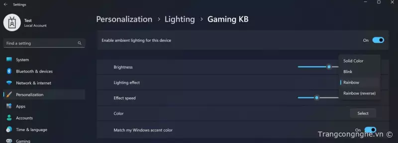 Dynamic Lighting, điều khiển đèn LED RGB của các thiết bị ngoại vi