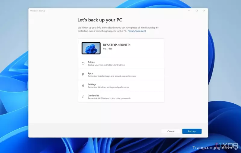 Microsoft đã giới thiệu app Windows Backup mới cùng với Dev Drive trong bản Build 23466. App này sẽ cho phép người dùng sao lưu tất cả các file và thư mục vào OneDrive chỉ bằng một nút bấm đơn giản. Ngoài ra, app cũng sẽ đồng bộ các tuỳ chọn app, cài đặt và thông tin đăng nhập khi người dùng thiết lập một máy tính mới. Điều này giúp người dùng dễ dàng chuyển đổi và cài đặt lại máy tính mà không mất đi các tuỳ chọn và dữ liệu quan trọng.