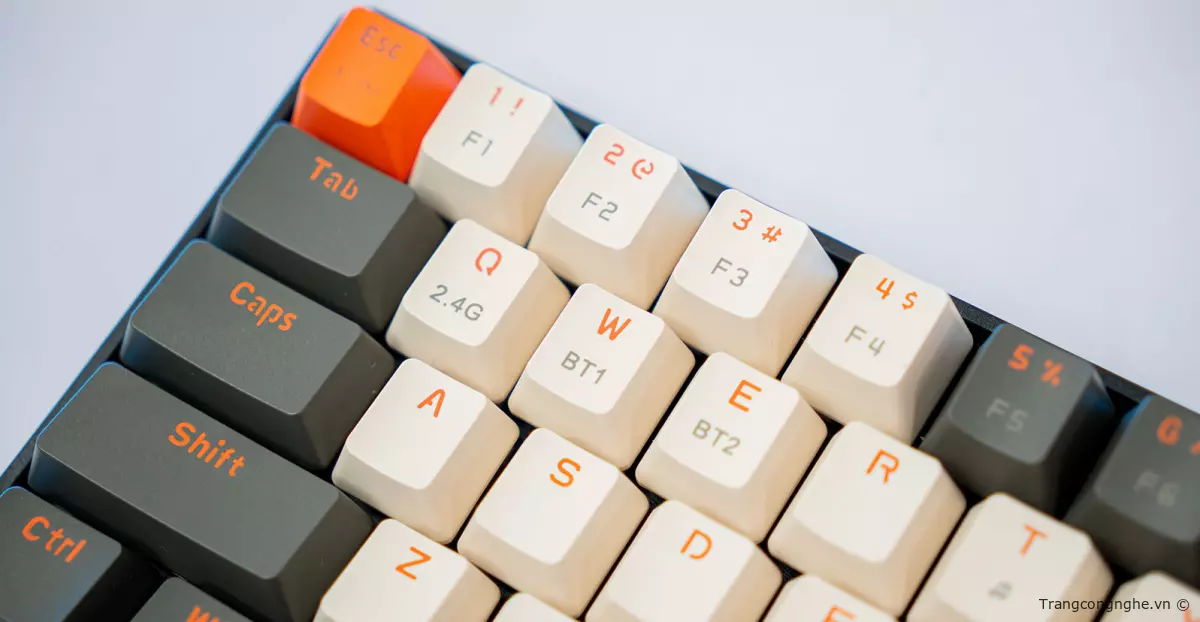 Người dùng có thể dễ dàng chuyển đổi giữa các hình thức kết nối bằng cách sử dụng các phím tắt như Fn + Q (cho băng tần 2.4GHz), Fn + W (cho Bluetooth 1) hoặc Fn + E (cho Bluetooth 5.2). Bàn phím cũng được trang bị các đèn báo nhỏ trên các phím tắt, giúp người dùng dễ dàng nhận biết chế độ kết nối đang hoạt động.