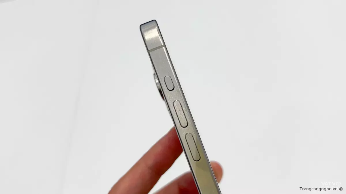 Khung viền Titanium trên iPhone 15 Pro Max thật sự rất đẹp và cao cấp. Titanium cũng giúp khối lượng máy giảm đáng kể (từ 240 gram xuống 221 gram), tương đương với cảm giác đang cầm iPhone 15 Plus với khung viền nhôm.