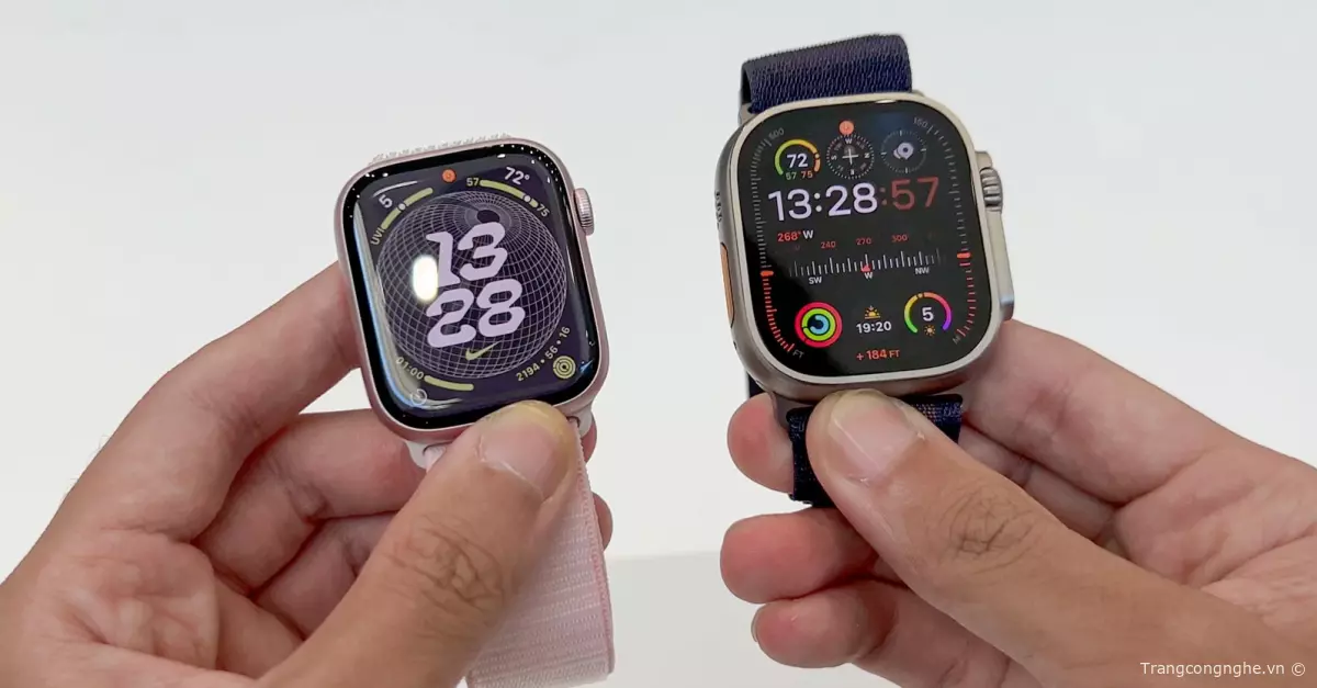 Apple Watch Series 9 có hai phiên bản kích thước là 41mm và 45mm, với mức giá khởi điểm từ 10,49 triệu đồng. Trong khi đó, Apple Watch Ultra 2 chỉ có một phiên bản kích thước 49mm và có giá khởi điểm từ 21,99 triệu đồng.