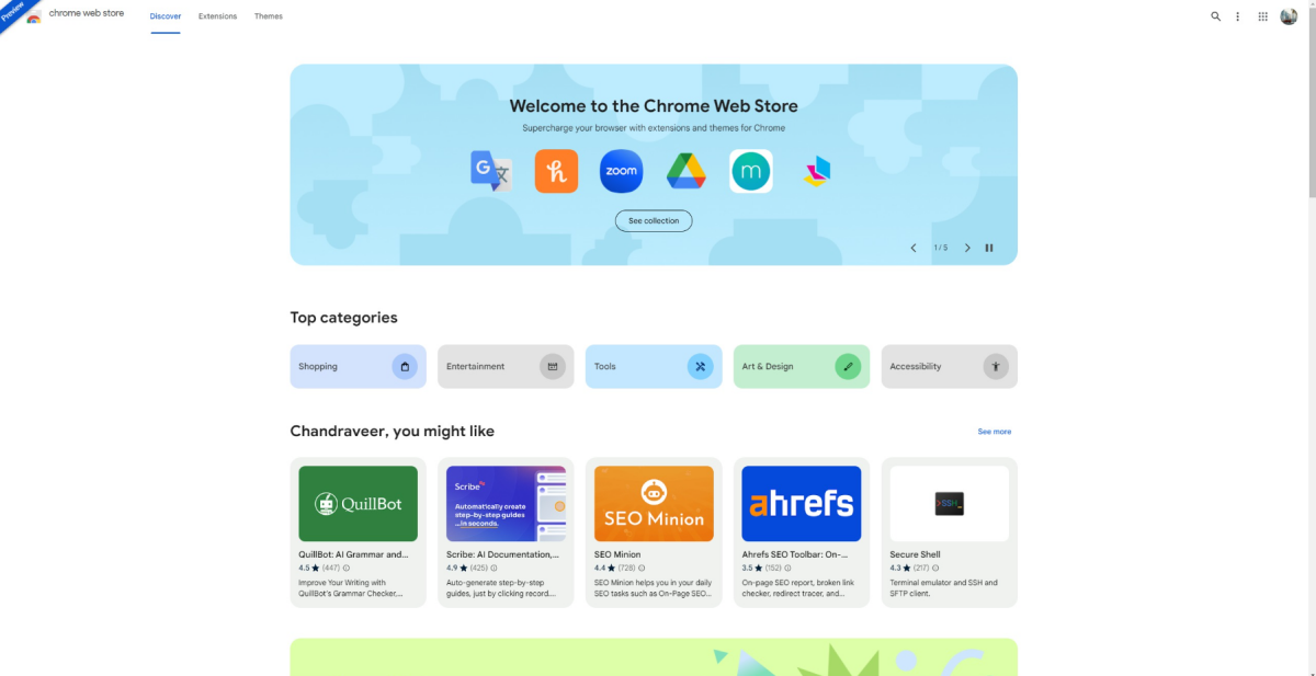 Trên phiên bản này, Google đã cải tiến giao diện của Chrome Web Store (Cửa hàng Chrome trực tuyến) để giúp người dùng dễ dàng tìm và cài đặt các tiện ích mở rộng và chủ đề theo ý muốn. Giao diện mới của Chrome Web Store tương đồng với phiên bản trang web của Google Play Store và cũng áp dụng thiết kế Material You. Nhờ đó, việc tìm kiếm và khám phá các tiện ích mở rộng và chủ đề trở nên thuận tiện hơn và mang lại trải nghiệm thú vị cho người dùng.