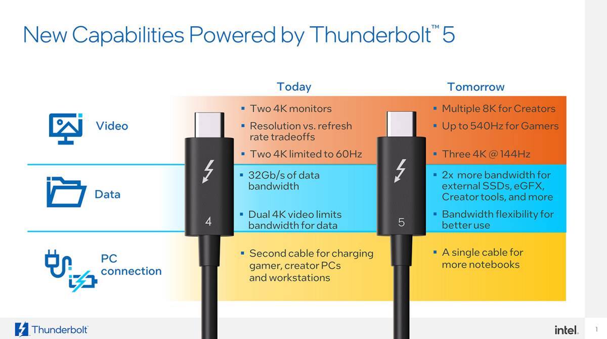 Dự kiến, từ năm 2024, người dùng sẽ thấy sự xuất hiện rộng rãi của các máy tính và phụ kiện tuân thủ tiêu chuẩn Thunderbolt 5 của Intel trên thị trường.