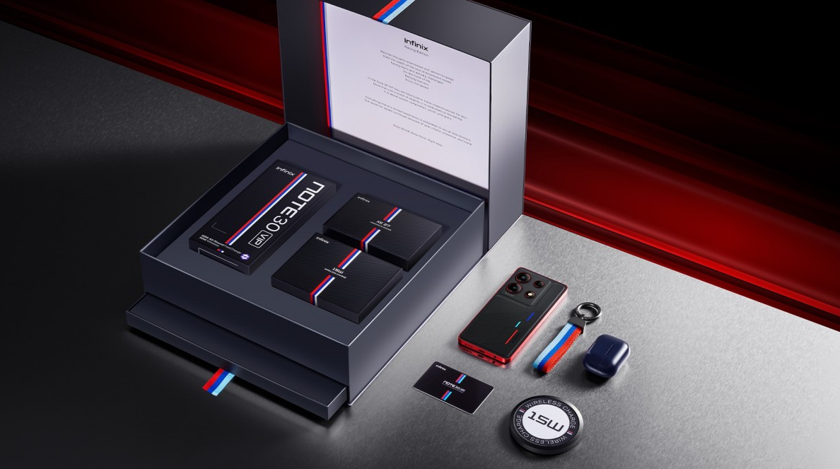 Thêm vào đó, Infinix Note 30 VIP Racing Edition còn đi kèm với một hộp đựng được thiết kế theo chủ đề BMW. Bên trong hộp, người dùng sẽ tìm thấy một bộ sạc không dây có công suất 15W và một cặp tai nghe không dây của Infinix. Hãng cũng cung cấp dịch vụ sửa chữa ưu tiên và những đặc quyền VIP đặc biệt dành riêng cho những người dùng mua phiên bản đặc biệt này.
