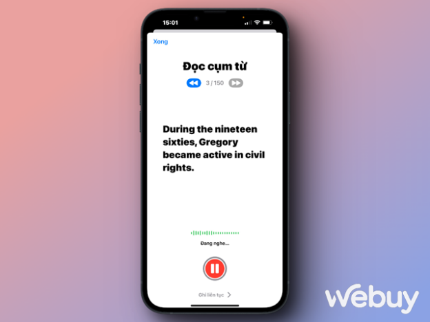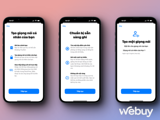 Đây là bước quan trọng vì từ những bản ghi âm này, AI của iOS 17 sẽ ghi nhớ và 'luyện giọng' nhờ vào các âm tiết từ giọng đọc của bạn. Qua đó hoàn chỉnh 'Giọng nói điện tử' của bạn.