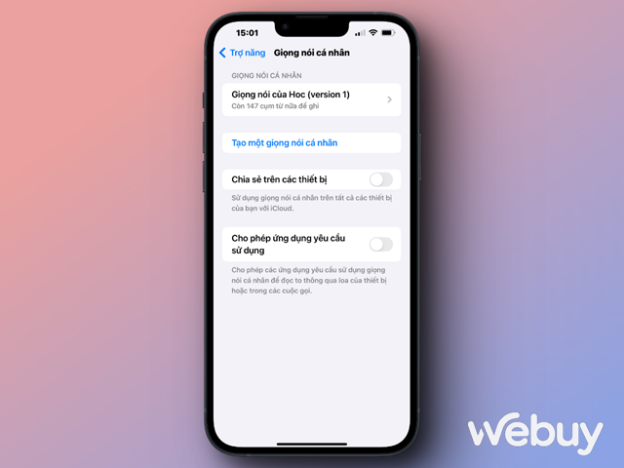 Để sử dụng 'Giọng nói cá nhân' của bạn sau khi đã khởi tạo, bạn có thể làm theo các bước sau trên iOS 17: