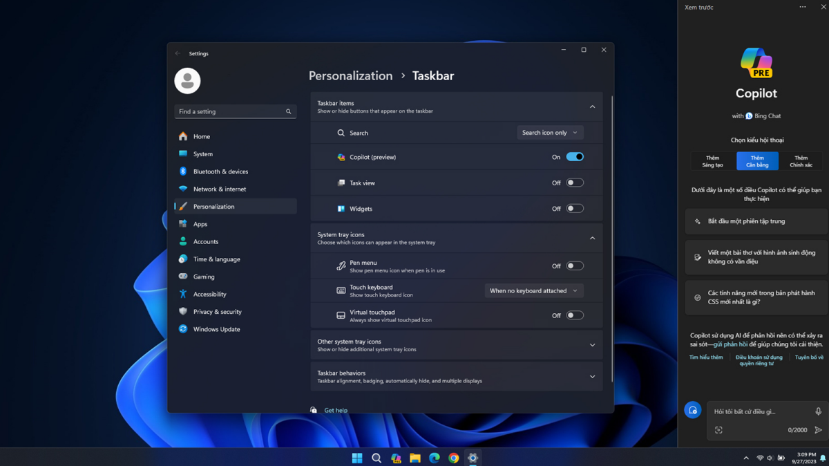 Để bật Copilot trên Windows 11 23H2, bạn có thể thực hiện các bước sau: