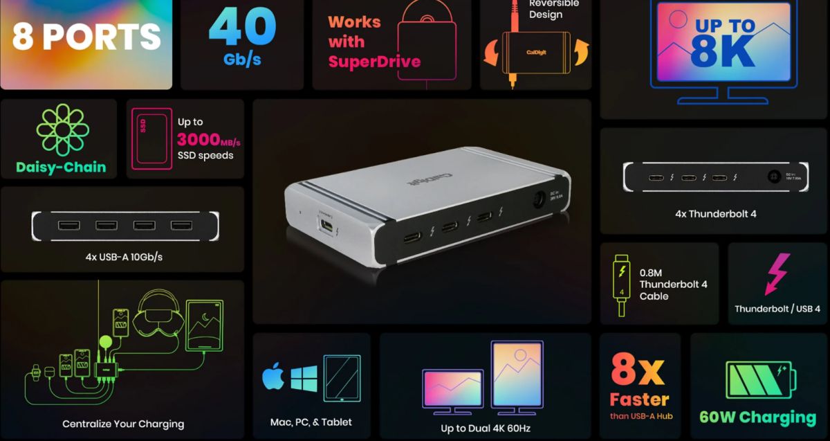 Tôi thích mua các sản phẩm đáp ứng đủ nhu cầu và có thiết kế nhỏ gọn. Sau khi xem xét các cổng trên hub Thunderbolt 4 của CalDigit, tôi đã quyết định chọn nó vì: