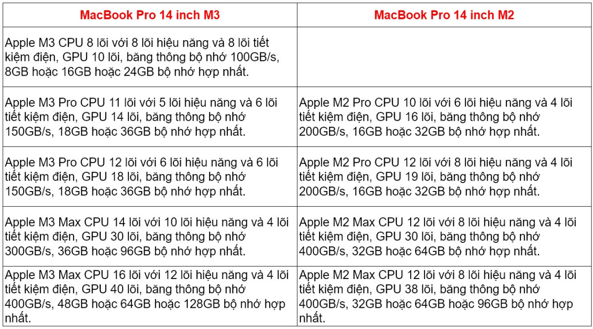 Các Lựa Chọn Cấu Hình Được Cung Cấp Cho MacBook Pro 14 inch