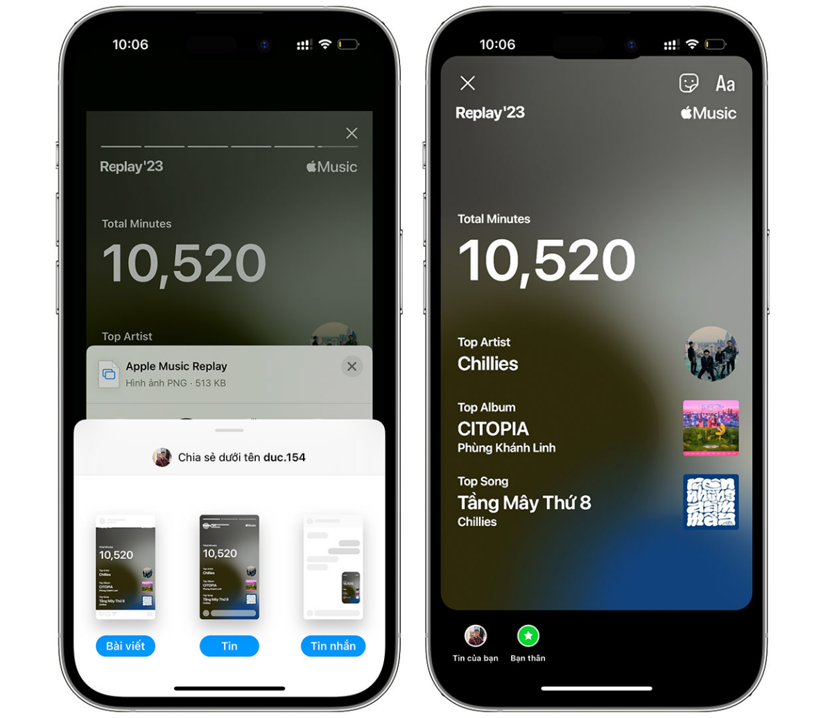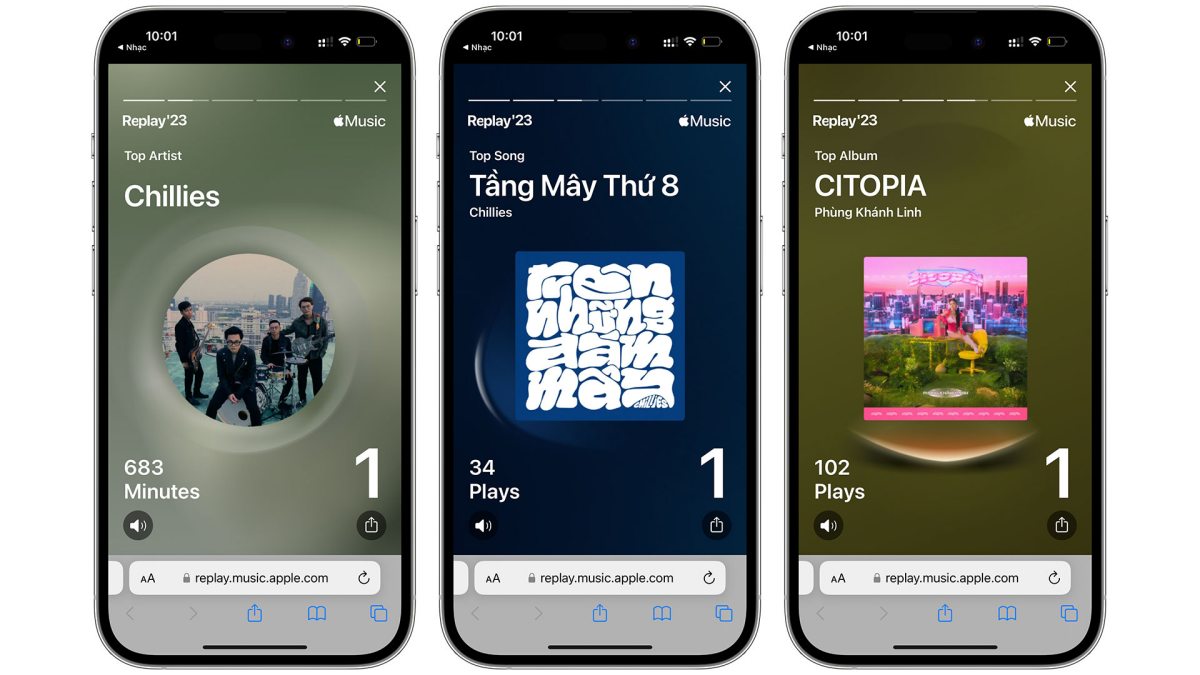 Dưới phần video, người dùng có thể xem các điểm nổi bật với thông tin chi tiết về các album và danh sách phát hàng đầu của họ trong năm vừa qua. Ngoài ra, họ cũng có khả năng thêm danh sách phát Apple Music Replay 2023 này vào ứng dụng Music (Âm nhạc) ở cuối trang.