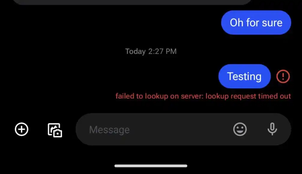Hiện tại, khi người dùng thử gửi iMessage qua Beeper Mini, ứng dụng xuất hiện lỗi và thông báo 'failed to lookup on server: lookup request timed out'. Trong khi trả lời các báo cáo trên Reddit liên quan đến sự cố này, một thành viên của nhóm Beeper khẳng định rằng: 'Hãy báo cáo sự cố từ ứng dụng để chúng tôi có thể điều tra nguyên nhân gây ra vấn đề.'