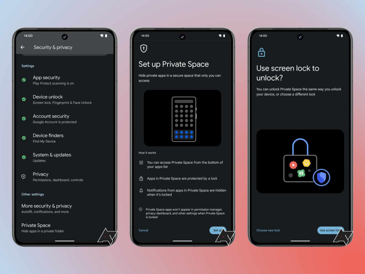 Hiện tại, Google đang tiến hành nghiên cứu và phát triển tính năng 'Không Gian Riêng Tư' (Private Space) trên hệ điều hành Android, cho phép người dùng ẩn và khóa các ứng dụng trên điện thoại của họ. Qua những hình ảnh rò rỉ, người dùng có thể đoán được cách tính năng riêng tư này sẽ hoạt động.