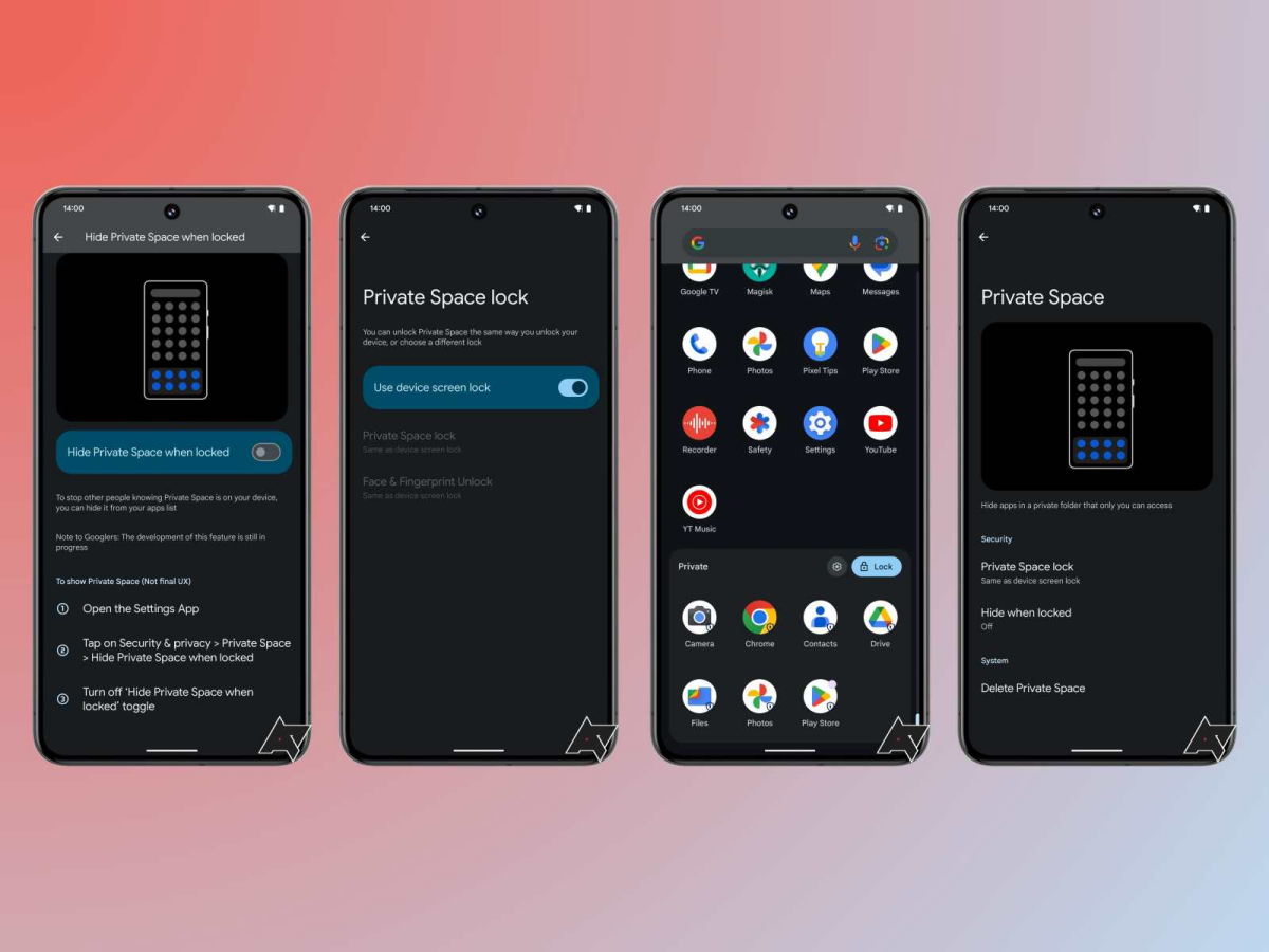Theo thông tin từ bản cập nhật Android 14 QPR 2 Beta 2 dành cho các thiết bị Pixel, tính năng mới mang tên 'Không Gian Riêng Tư' đã được thêm vào, mặc dù vẫn chưa hoạt động được. Dưới đây là một số hình ảnh chụp màn hình liên quan đến tính năng này.