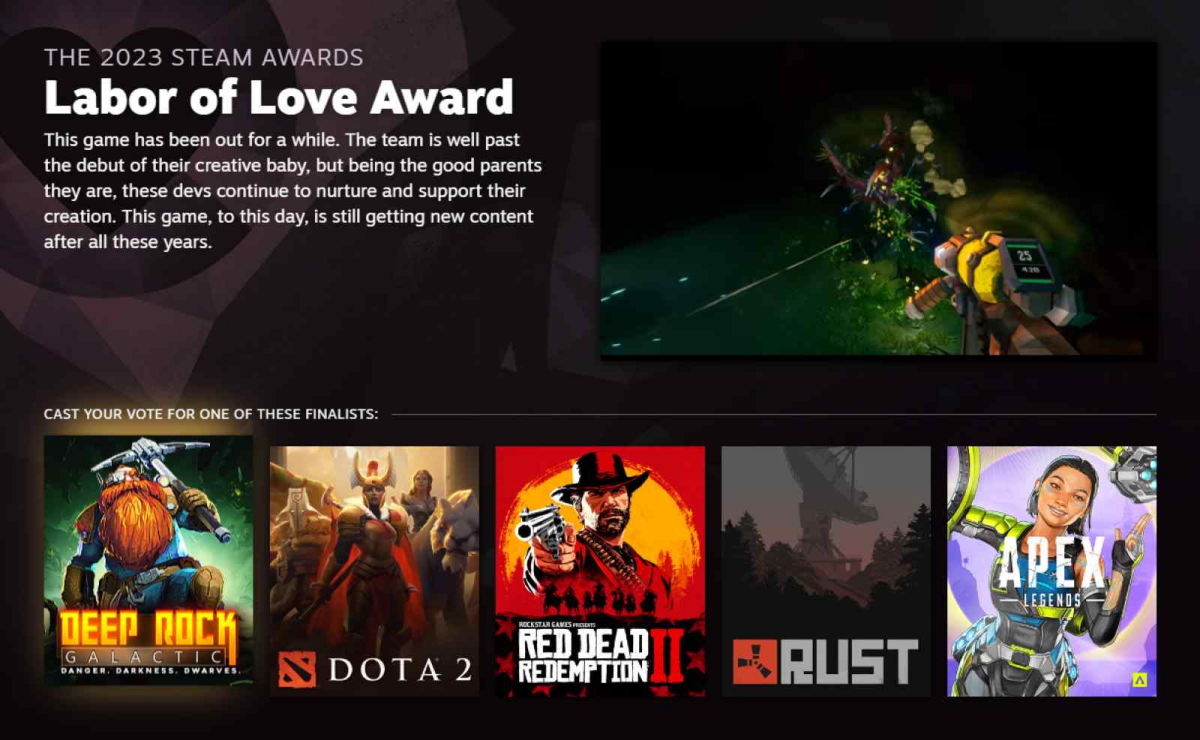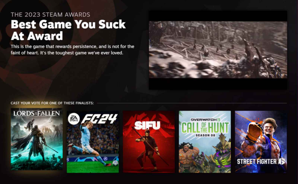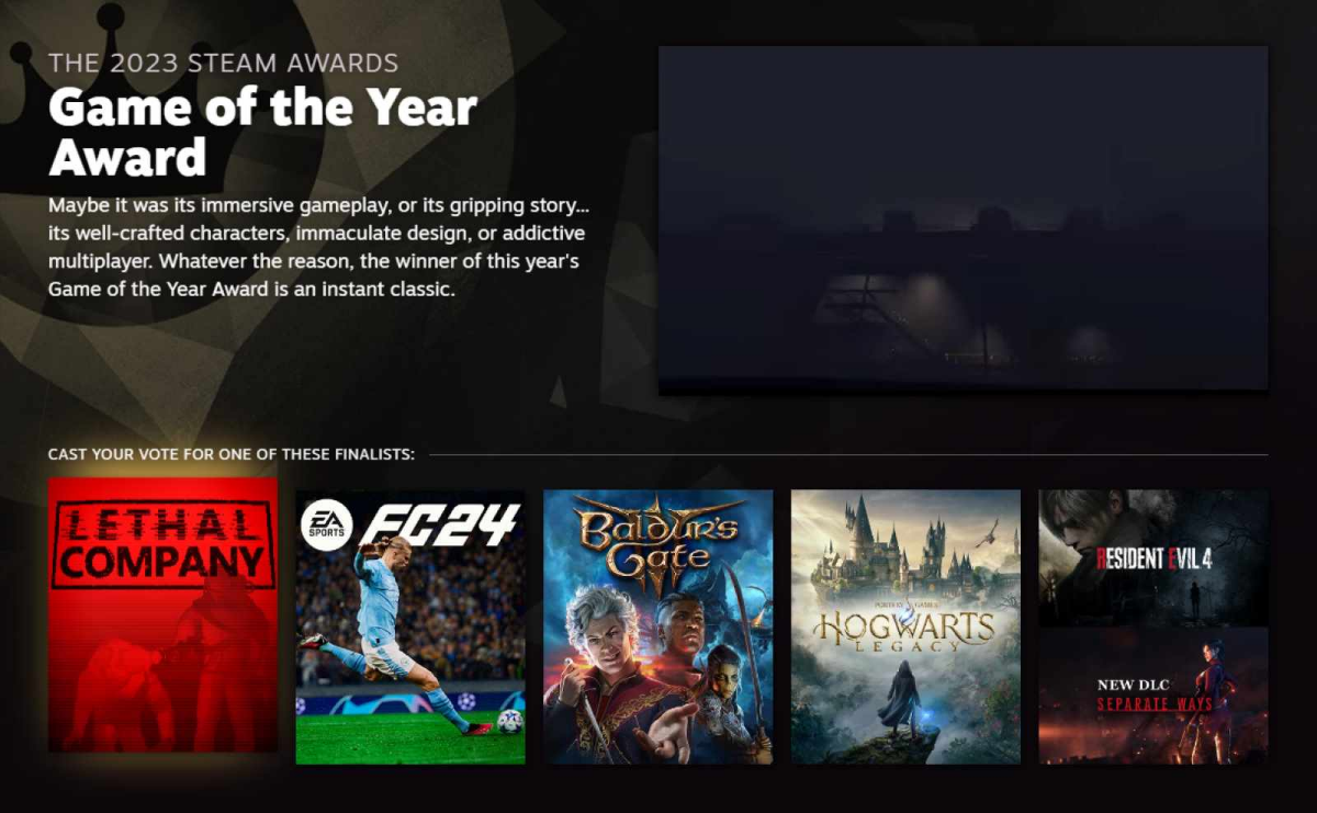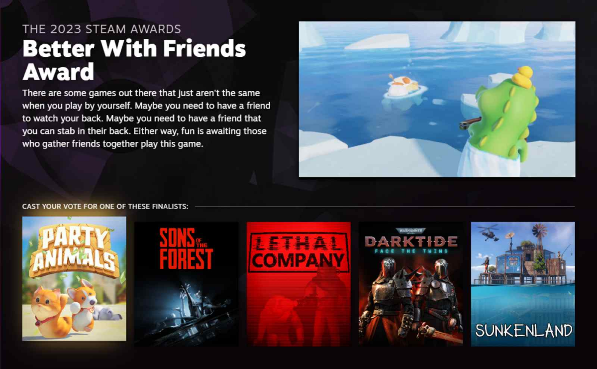 Valve vừa công bố đầy đủ danh sách đề cử cho Giải thưởng The Steam Award năm 2023. Các giải thưởng trong từng hạng mục sẽ được trao cho những tựa game có số lượt bầu chọn cao nhất.