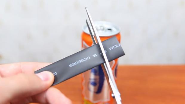 Dùng đoạn ống cao su này để che lại phần nắp lon nước.