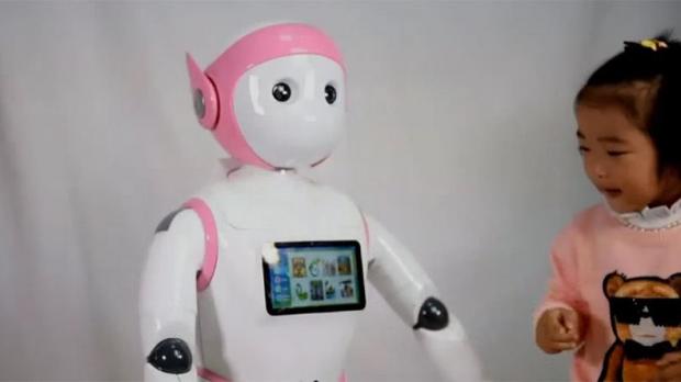 Một robot có kích cỡ như một đứa trẻ, có thể làm bạn hoặc trông chừng trẻ trong thời gian ngắn, đang được thử nghiệm tại Trung Quốc.