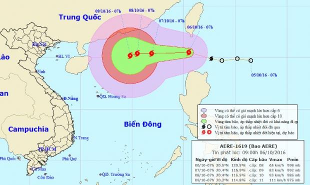 Dự báo trong 24 giờ tới, bão di chuyển theo hướng Tây Tây Bắc, mỗi giờ đi được khoảng 20-25km, đi vào khu vực Biển Đông và còn tiếp tục mạnh thêm. Đến 07 giờ ngày 07/10, vị trí tâm bão ở vào khoảng 20,4 độ Vĩ Bắc; 116,9 độ Kinh Đông, cách quần đảo Hoàng Sa khoảng 660km về phía Đông Bắc. Sức gió mạnh nhất ở vùng gần tâm bão mạnh cấp 9 (75-90km/giờ), giật cấp 10-11.