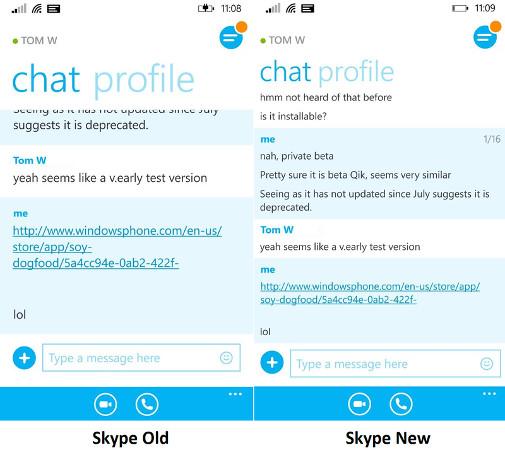 Cùng so sánh giao diện ứng dụng Skype cũ và mới trong ảnh chụp màn hình dưới đây: