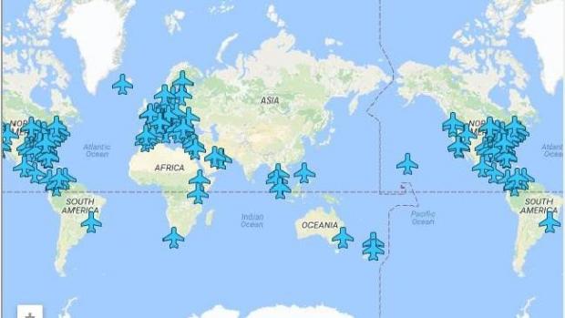 Cho đến nay, có khoảng 80 sân bay trên thế giới được ghi trên bản đồ.