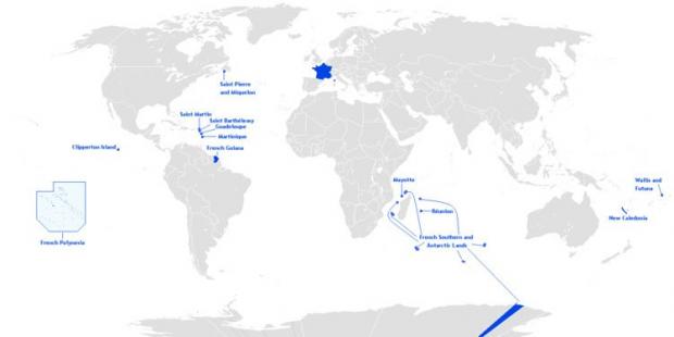 Điểm đặc biệt là các vùng lãnh thổ này nằm ở nhiều nơi trên thế giới, từ một số hải đảo ở Đại Tây Dương, Ấn Độ Dương, Guyane thuộc Pháp ở đại lục Nam Mỹ đến 1 số địa điểm ở châu Phi và lãnh thổ tuyên bố chủ quyền trên Bắc Cực.