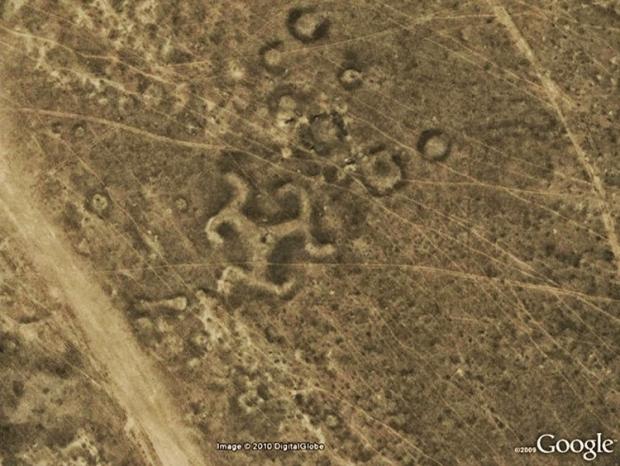 Các nhà khoa học phát hiện hơn 50 hình vẽ khổng lồ trên mặt đất ở miền bắc Kazakhstan, theo Live Science. Chúng có nhiều hình dạng khác nhau gồm hình tròn, dấu chữ thập, hình vuông, thậm chí là chữ Vạn. Những hình vẽ không được biết đến suốt hàng nghìn năm cho đến khi Dmitriy Dey, một người đam mê khảo cổ học, phát hiện ra chúng bằng Google Earth năm 2007.