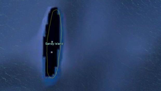 Đảo Sandy ở phía nam Thái Bình Dương nằm giữa Australia và New Caledonia, thuộc lãnh thổ hải ngoại của Pháp và có tên trên nhiều bản đồ từ thập kỷ trước. Hòn đảo xuất hiện như một hình đa giác màu đen trên ứng dụng Google Earth. Tháng 11/2012, các nhà nghiên cứu tại Đại học Sydney, Australia, tới vị trí của đảo Sandy trên bản đồ, song họ không trông thấy bất cứ thứ gì. Kể từ đó, Sandy còn được mệnh danh là 'hòn đảo ma'.