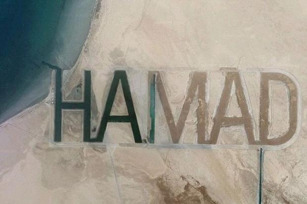 Hamad bin Hamdan al Nahyan, thành viên của gia đình tỷ phú cầm quyền tại Abu Dhabi, khắc tên mình trên bề mặt cát của đảo Futaisi do ông sở hữu trong vùng Vịnh Ba Tư. Các chữ cái HAMAD dài hơn 3km, lớn đến mức có thể nhìn thấy từ không gian. Nước biển tràn vào dòng chữ khi thủy triều lên và rút đi khi thủy triều xuống.