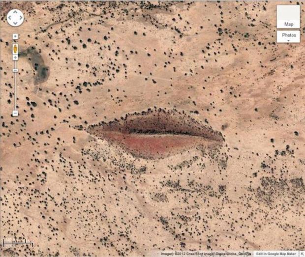 Hình đôi môi ở trên thực chất là một ngọn đồi tại Gharb, Darfur, Sudan, có tọa độ 12°22'13.32' vĩ bắc, 23°19'20.18' kinh đông.