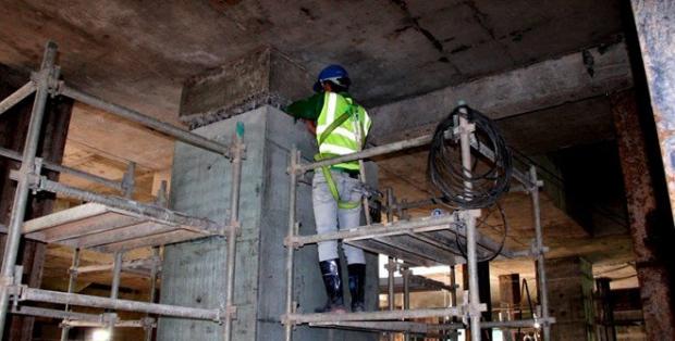 Không khí thi công rất khẩn trương cả dưới và trên công trình.