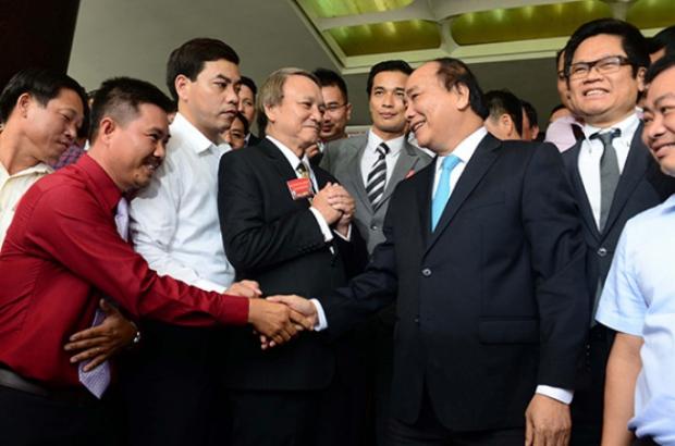 Thủ tướng Nguyễn Xuân Phúc trao đổi với các doanh nhân trong một sự kiện gần đây.