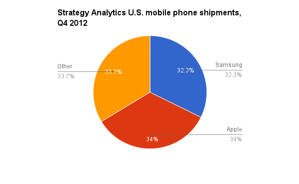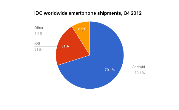 doanh số bán iPhone của Apple. Trong quý 4 năm 2012, Android chiếm lĩnh 70% thị