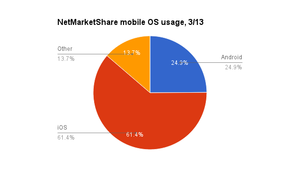 Báo cáo hàng tháng của NetMarketShare cho biết tháng 3 vừa qua, trong các thiết bị di động thì
