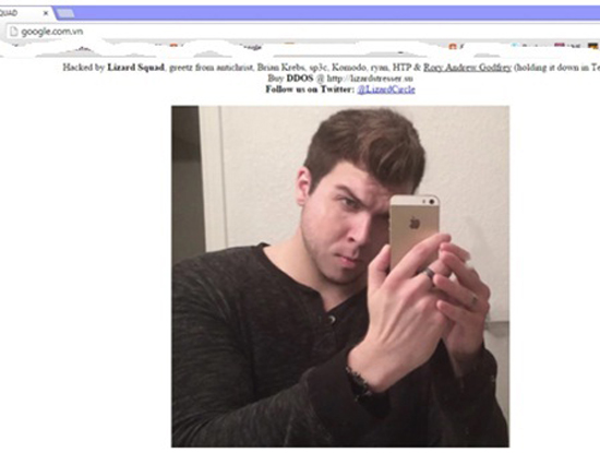 Như đã đưa tin, trưa hôm nay, ngày 23/2/2015, một số người dùng Internet Việt Nam đã phản ánh trang web tìm kiếm Google.com.vn đã bị hacker tấn công nên họ không thể truy cập để sử dụng. Cụ thể, khi truy người dùng tại Việt Nam truy cập vào Google.com.vn, thay vì xuất hiện giao diện tìm kiếm thông tin, trên màn hình chỉ hiện ra hình ảnh một thanh niên có vẻ đang “khoe” chiếc iPhone của mình. Hacker cũng để lại dòng thông báo “hacked bi Lizard Squad...”.
