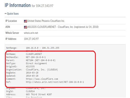 Tra cứu IP 104.27.143.97 thì địa chỉ này là của dịch vụ được hosting trên CloudFlare.