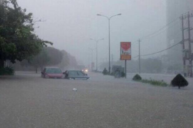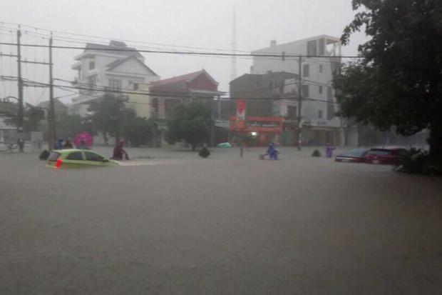 Tối 14/10, nhiều tuyến đường của thành phố Đồng Hới biến thành 'sông'.