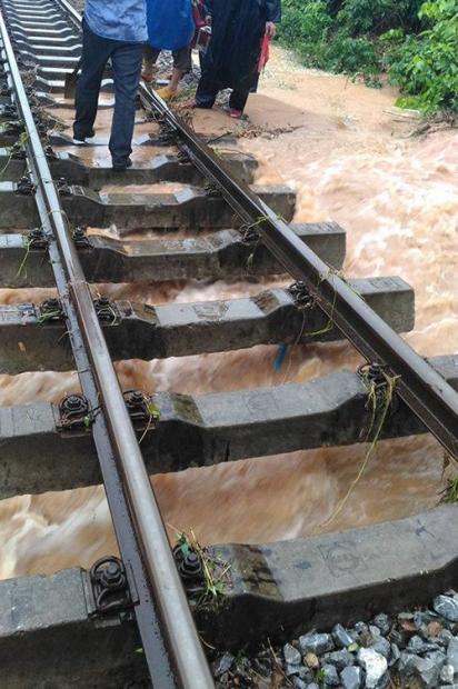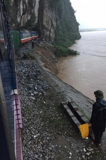 Đường sắt Bắc Nam đoạn qua Quảng Bình có 11 điểm sạt lở. Nhiều nơi nước làm trôi đá nền đường dưới thanh tà vẹt, có đoạn ngập đường ray đến 10cm.