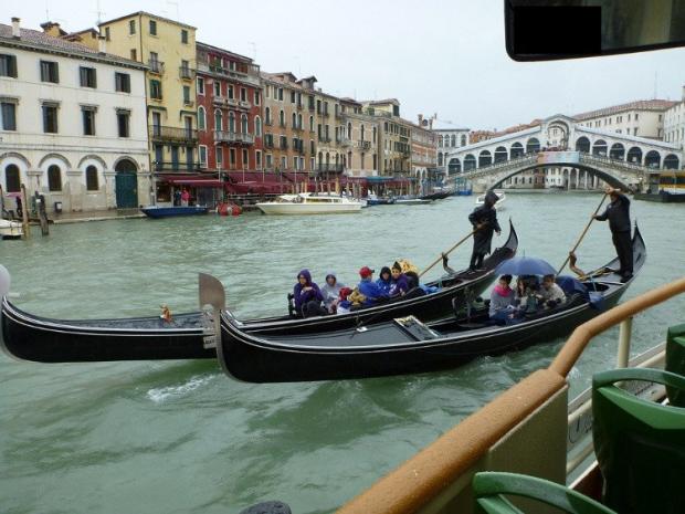 Các phương tiện giao thông hiện đại thường xuất hiện tại những thành phố lớn như tàu điện ngầm, xe bus, taxi... trở nên vô tác dụng tại thành phố này. Ở đây chỉ có giao thông đường thủy hoặc đi bộ. Giao thông công cộng thì có watertaxi, waterbus... còn khách du lịch thì có gondola (thuyền cổ). Loại thuyền đặc trưng của Venice này dài 11m, rộng 1,5m, được ghép bởi 280 mảnh của 8 loại gỗ khác nhau và nặng chừng 600kg. Một đầu mũi thuyền cong vút, cao gần 1m, có gắn 6 răng thép lấp lánh, tượng trưng cho 6 quận của Venice.