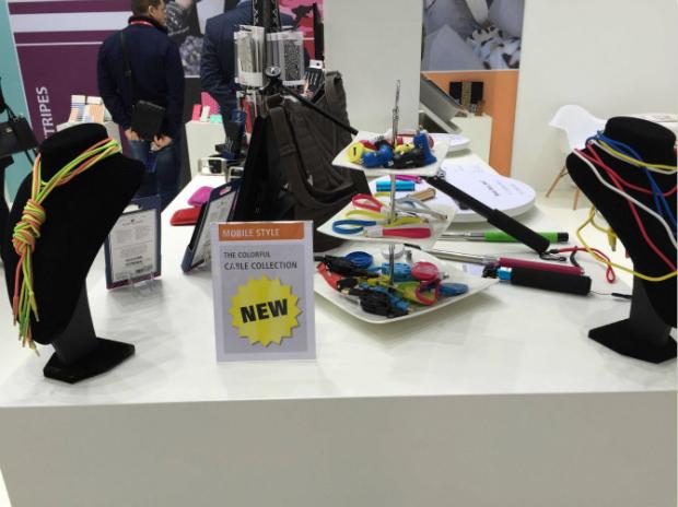 Phụ kiện đủ màu sắc dành cho điện thoại xuất hiện mọi nơi tại triển lãm MWC. Trong đó, đáng chú ý có cả dây cáp có thể đeo vào cổ như một loại phụ kiện trang sức.