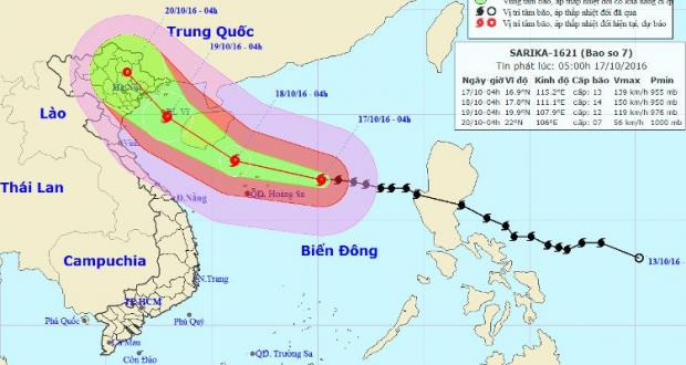 Hồi 04 giờ ngày 17/10, vị trí tâm bão ở vào khoảng 16,9 độ Vĩ Bắc; 115,2 độ Kinh Đông, cách quần đảo Hoàng Sa khoảng 320km về phía Đông. Sức gió mạnh nhất ở vùng gần tâm bão mạnh cấp 13 (135-150km/giờ), giật cấp 16.