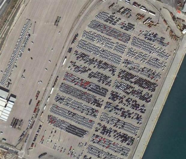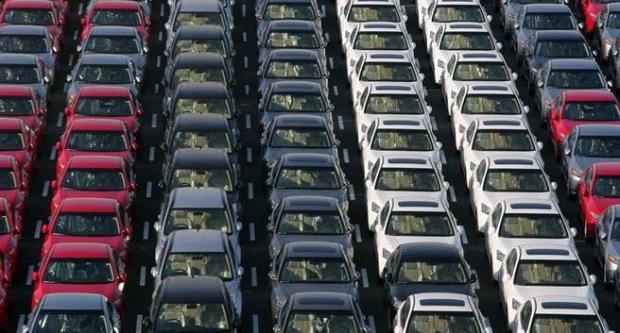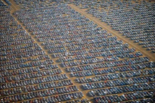 Số lượng lớn xe hơi tồn đọng trong bãi đỗ xe lộ thiên.