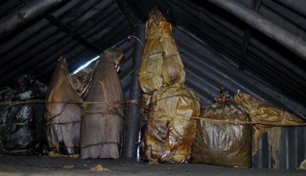 Để chống chọi với tiết trời giá lạnh mùa đông giữa rừng sâu, ông Châu tích trữ thuốc lá, ớt và cây long pot (mỗi khúc củi long pot bằng sải tay có thể giữ lửa âm ỉ đến 3 đêm mà không tắt) vừa giữ lửa vừa sưởi ấm.