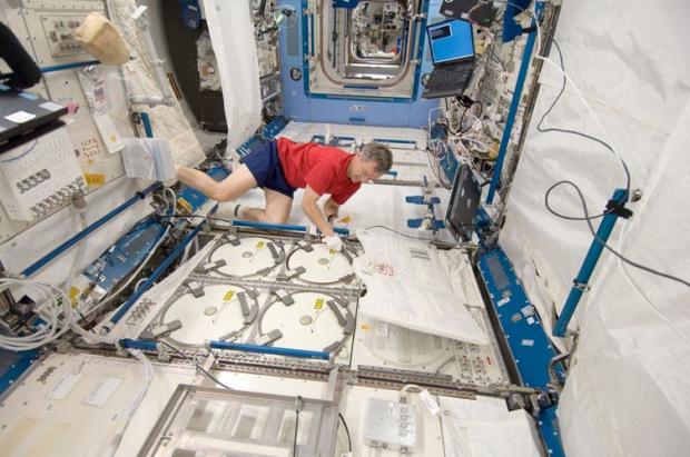 Phi hành gia đang làm việc bên trong Trạm vũ trụ quốc tế.