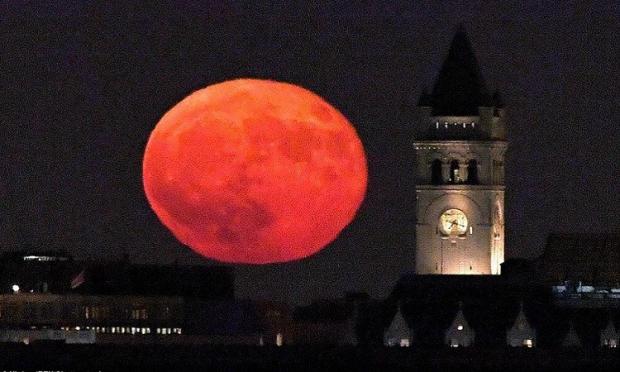 Siêu trăng trên bầu trời thủ đô Washington DC của Mỹ hôm 16/10. Năm nay, ba siêu trăng sẽ chiếu sáng Trái Đất vào tháng 10, 11, 12, theo The Sun. (Ảnh: Xinhua).
