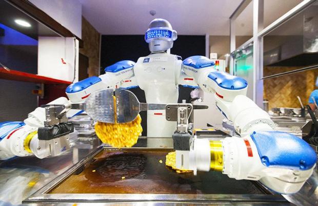 Trong tương lai, có thể ra đời những nhà hàng mà thức ăn được chuẩn bị hoàn toàn bởi robot. Hiện tại, nhà hàng Henn-na nằm trong công viên Huis Ten Bosch của đại lý du lịch H.I.S. Đây là nhà hàng theo phong cách tự phục vụ (buffet), nơi robot chuẩn bị đồ ăn bên trong khu phức hợp Robot Kingdom. Ngoài 5 loại thức ăn, robot còn làm cả đồ uống và kem.