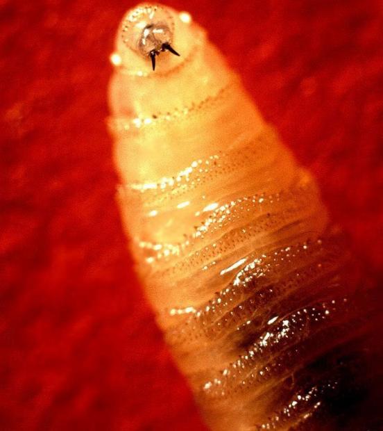 Trứng ruồi nở ra dòi, chúng bám trên các vết thương hở của động vật. (Ảnh: Wikipedia).