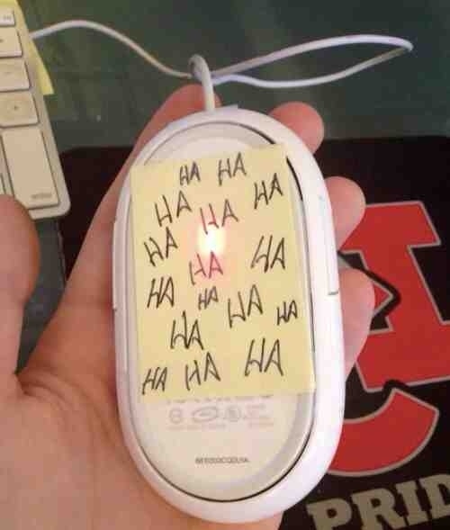 Chiêu này rất đơn giản. Bạn chỉ cần dùng một miếng băng dính và dán phía dưới mắt đọc của con chuột quang, nhớ kèm thêm vài chữ 'troll' nhẹ cho vui. Còn nếu ai còn dùng chuột bi, chỉ cần lật lên xoay nhẹ nắp và “ăn cắp bi” là vô hiệu quá nó.