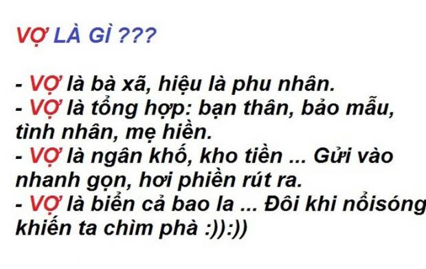 Vợ là gì trong mắt nhà khảo cổ học, trong mắt người nông dân. Cùng tìm hiểu qua những định nghĩa cực khó đỡ về vợ.